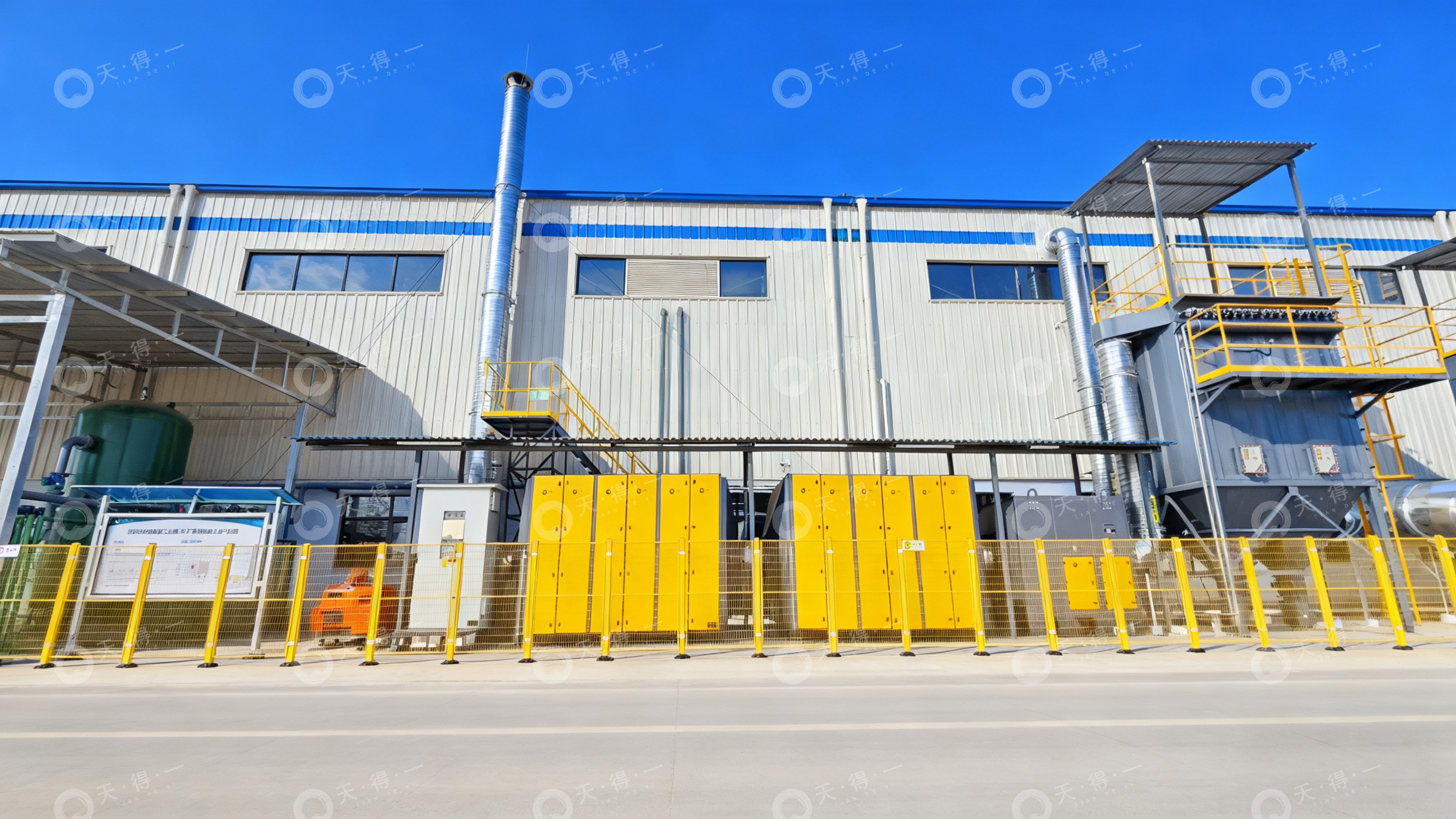 天得一根据锂电池涂覆废气治理的要求及该种废气的特点,采用防爆布袋除尘器+三级干式过滤器+两级活性炭箱处理工艺;净化后车间操作区域排放物浓度在人员安全范围浓度内,同时净化后废气排放浓度及排放速率达到标准。