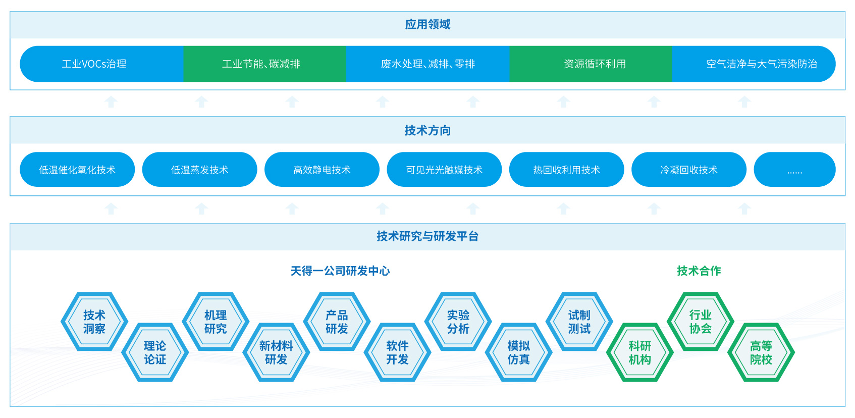天得一公司自成立以来,坚持自主绿色创新发展,持续在环境污染治理、节能减碳、资源循环利用等领域进行技术研究与研发, 公司研发人员比例占公司总人数1/3以上。